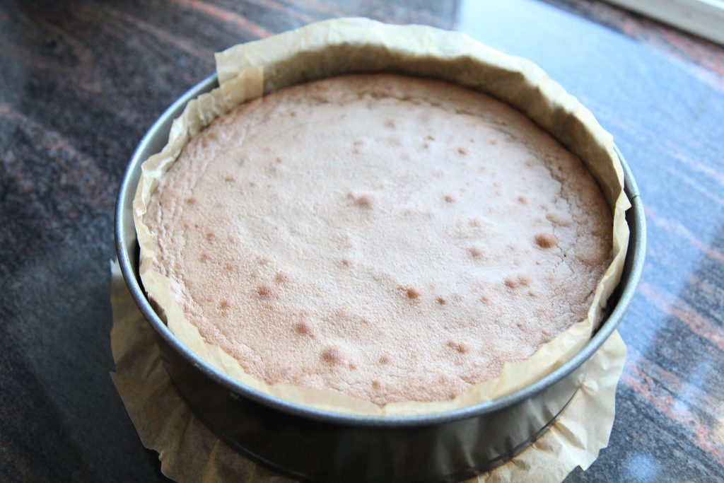 5. Hell i en smurt form kledd med bakepapir, 20-22 cm i diameter.