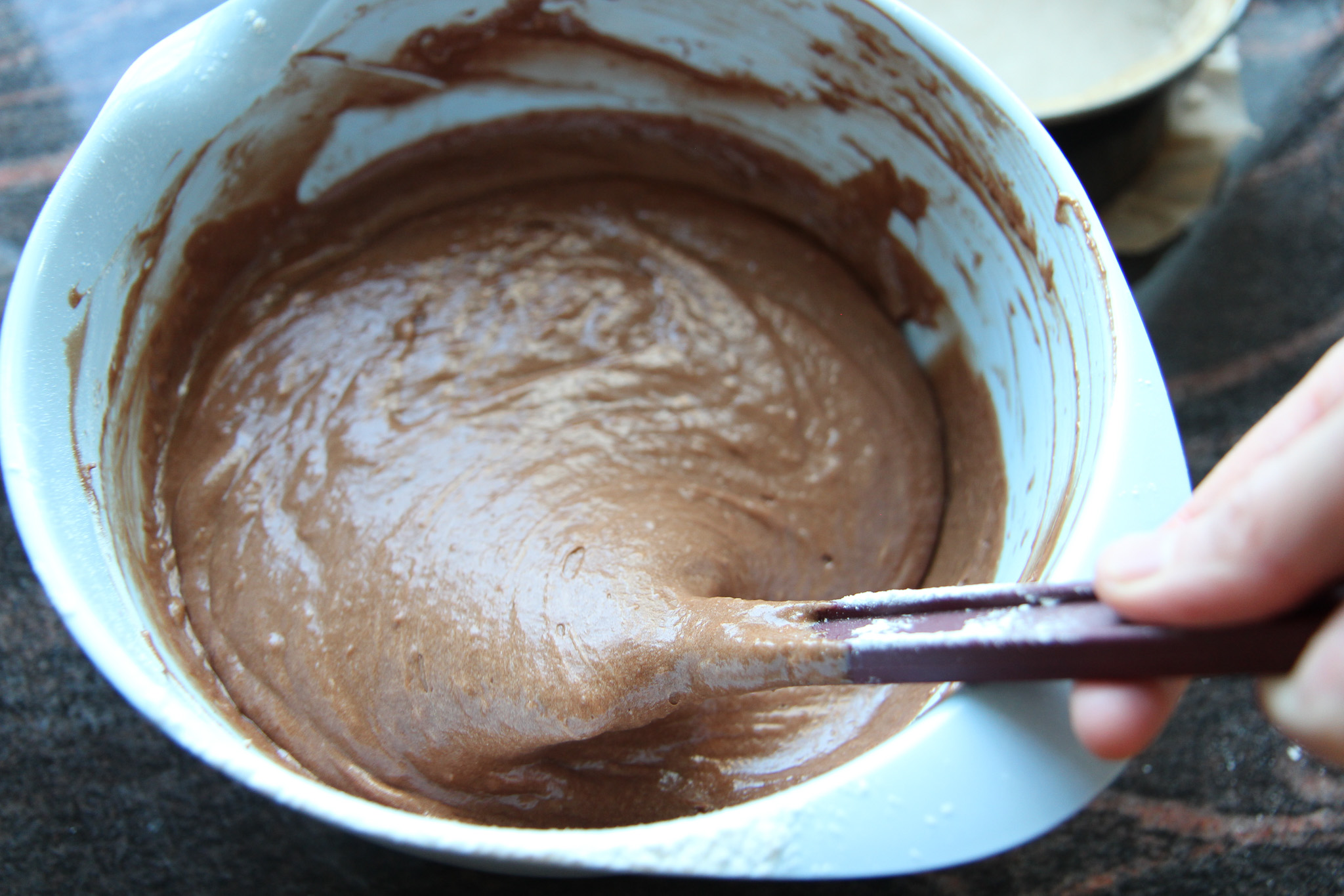 4. Sikt inn melet, vend det gjerne inn med en slikkepott så du ikke slår ut for mye luft av massen. Rør til du ikke har klumper.