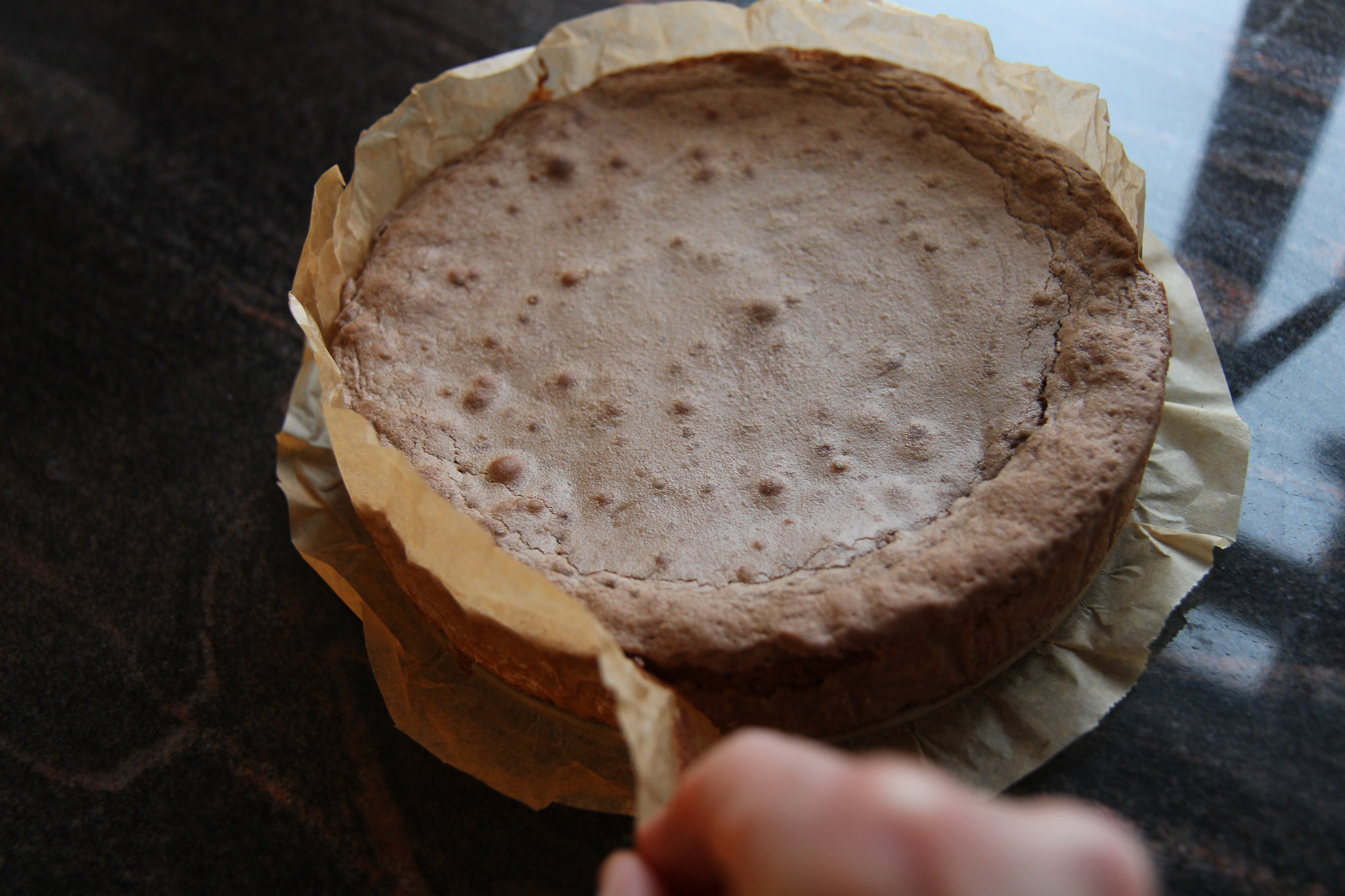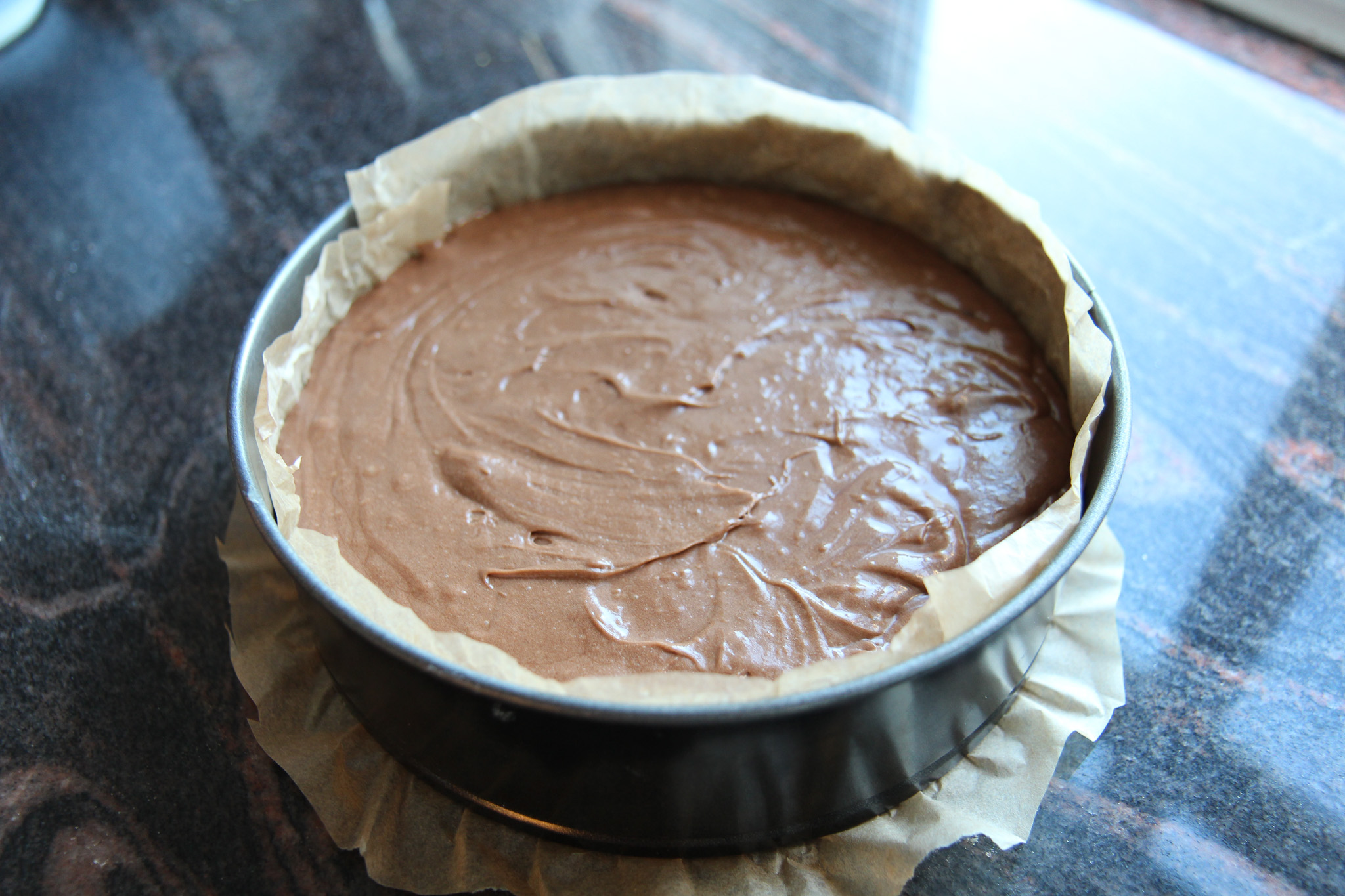 5. Hell i en smurt form kledd med bakepapir, 20-22 cm i diameter.