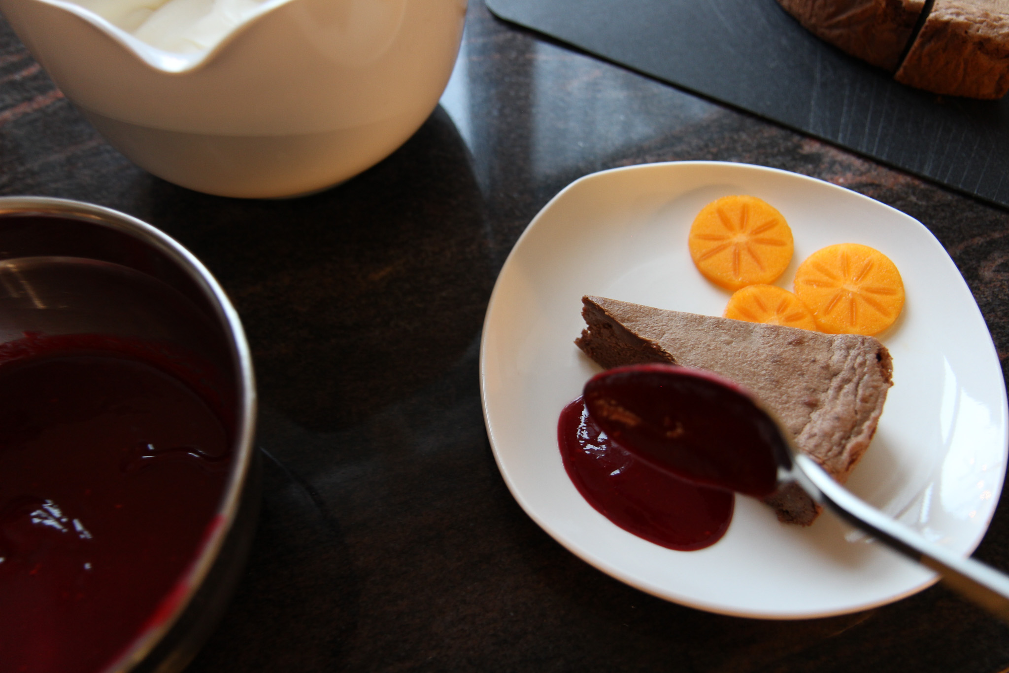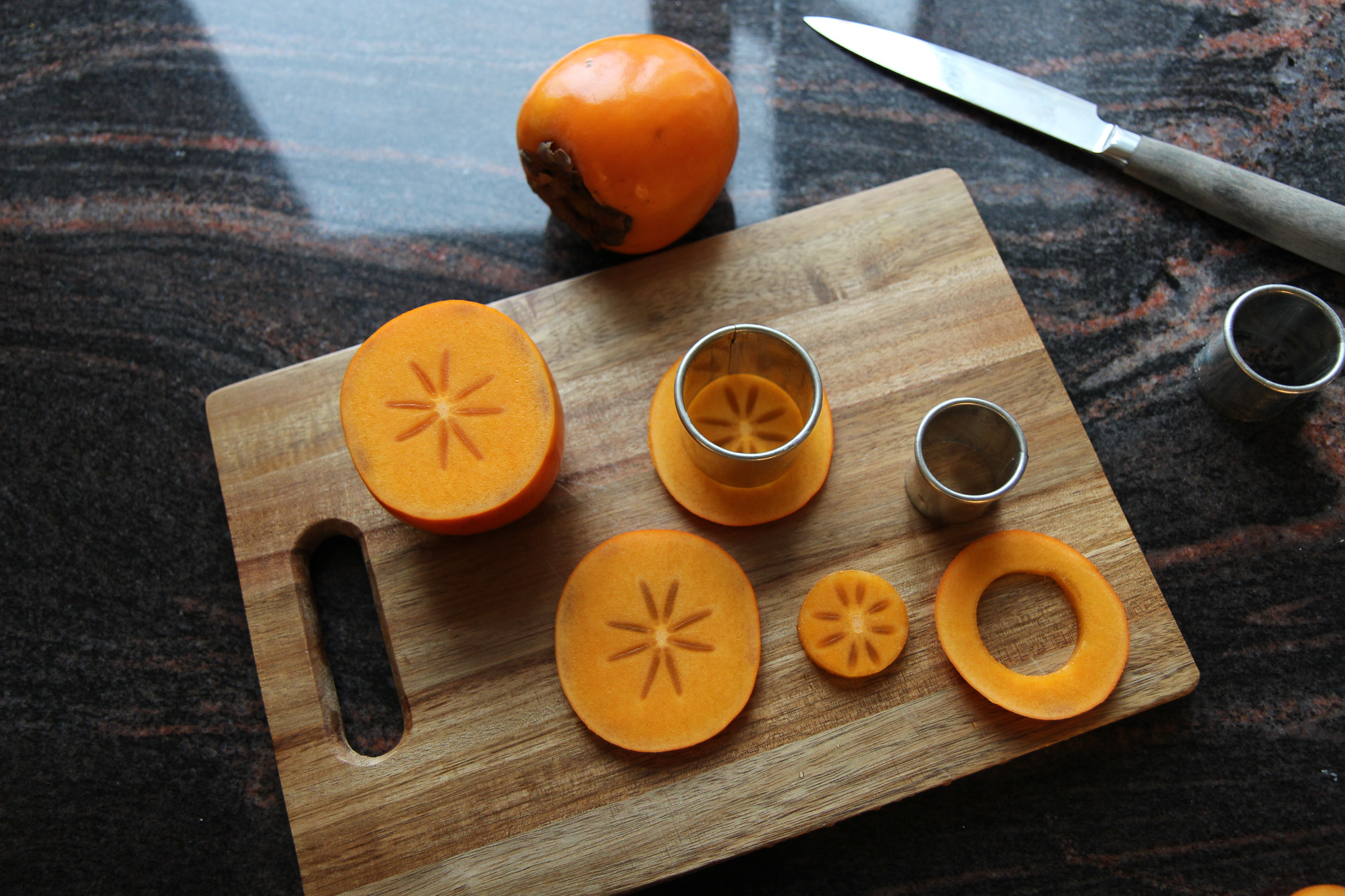 Jeg valgte å bruke persimon som jeg stakk ut fine rundinger. Du kan også bruke friske eller frosne bringebær eller appelsinfileter.