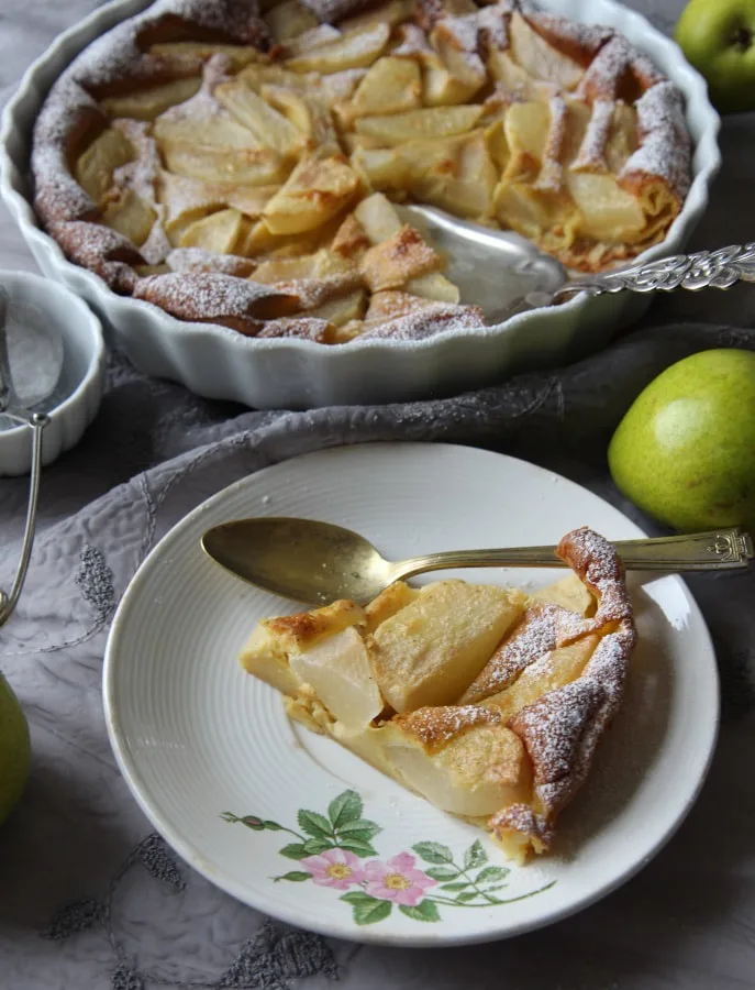 Pæredesserten jeg har laget i dag likner veldig på en annen dessert med et fransk navn (vil du lage desserten som kalles claftouis kan du klikke her) men jeg ville gi denne et litt enklere navn. Og forslagene raste inn på Instagram. I min story på Instagram fortalte jeg at posen med billigpærer hadde en litt morsom påskrift. Det sto at produsenten het «utro Jostein». Haha! Dermed foreslo noen at det burde bli navnet på dagens dessert. (En følger fortalte meg at L-en i navnet hadde falt ut. Pærebonden heter altså Jostein Lutro).