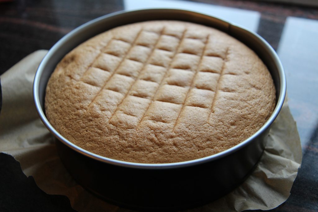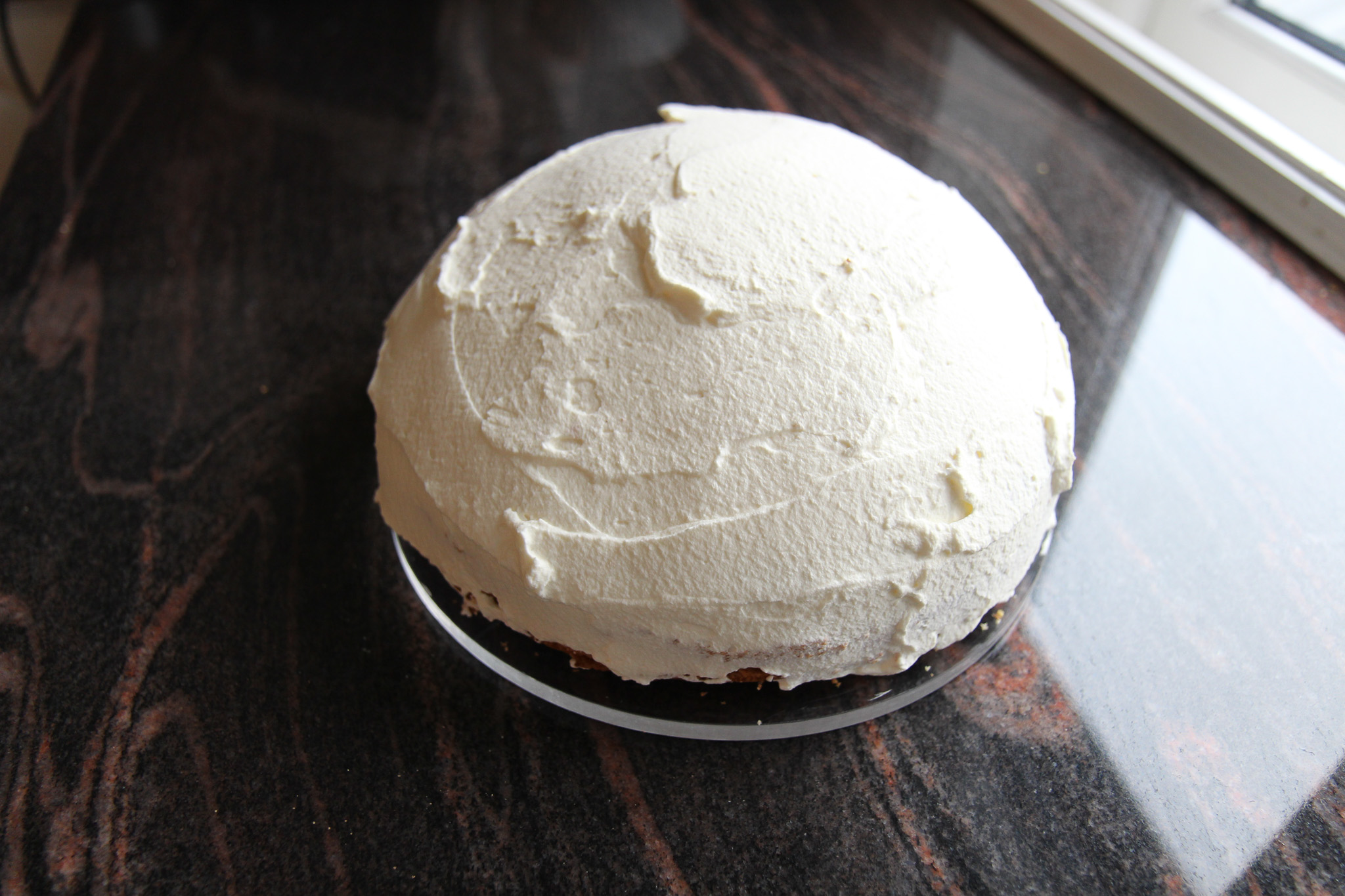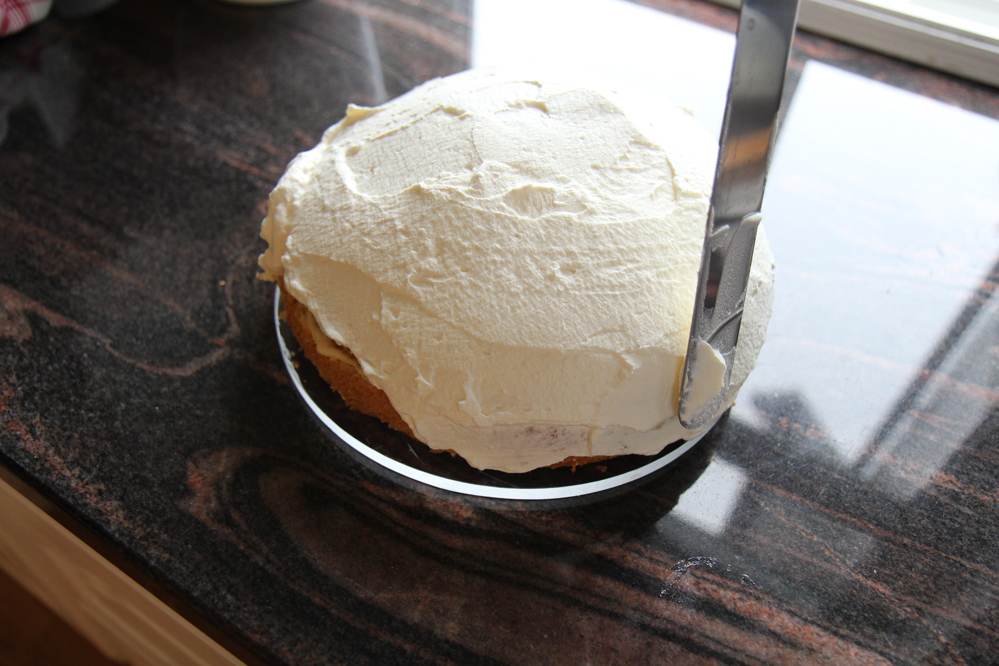 4. Stryk den opp, så kaka får en kuppelform. Sett i kjøleskap.
