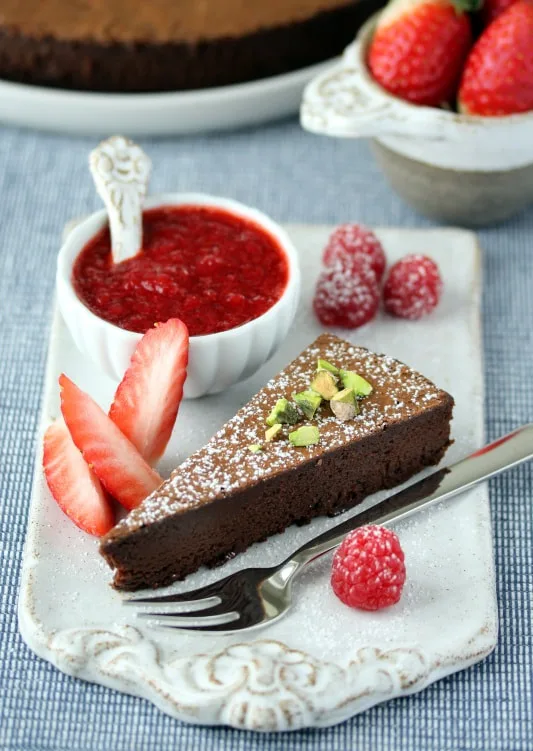 Denne Londonklassikeren fra River Cafe er noe av det mektigste du kan servere. Kaken er stor og kan deles i 16 biter. Om ikke alt spises på en gang kan den fryses. Originalt er det brukt sjokolade med 70% kakaoinnhold. Liker du det litt mindre kraftig på smak, velg en «vanlig» sjokolade (55% kakao).